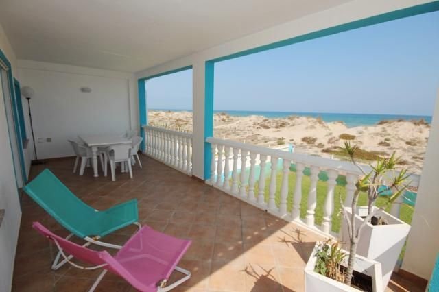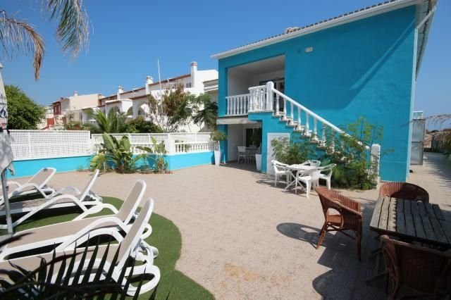 Eine seltene Gelegenheit: Wohnen in 1. Meerlinie mit direktem Zugang zum schönsten Sandstrand in der Umgebung von Oliva. Dieses Strandhaus mit Meerblick und 2 Wohneinheiten bietet insgesamt 6 Schlafzimmer, 2 Badezimmer sowie 2 Wohnzimmer und 2