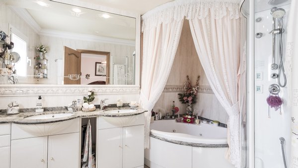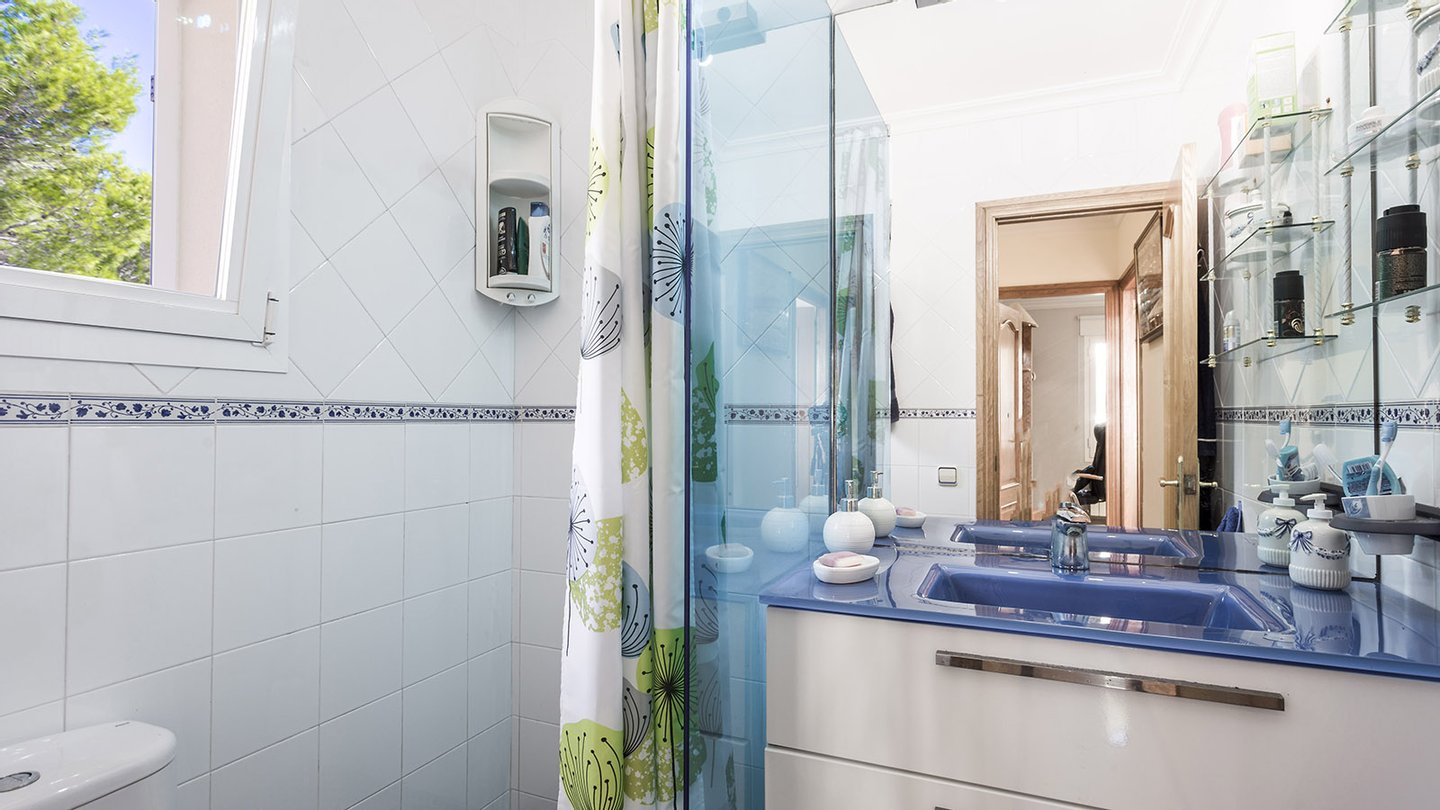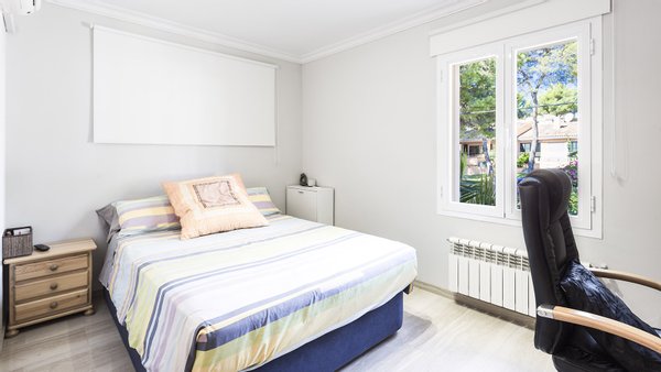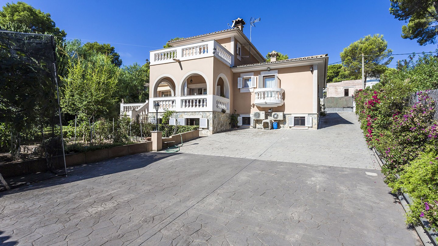 Die Villa Mallorca liegt ganz in der Nähe vom Naturhafen Santa Ponsa und dem beliebten Sandstrand. Sie befindet sich auf einem Grundstück von ca. 1.030 m2 und hat eine bebaute Fläche von ca. 300 m2. Die Mallorca Immobilie verfügt über ein helles Wohn/Esszimmer und vollausgestattete Einbauküche, 6 Schlafzimmer, 4 Badezimmer, 3 davon en Suite, einen Abstellraum und einen Hauswirtschaftsraum. Die Villa ist auf 3 Etagen aufgeteilt und in jeder Wohnebene befinden sich 2 Schlafzimmer. Weitere Ausstattungsmerkmale sind: Ölzentralheizung, Einbauschränke, Holzbalkendecke, doppelverglaste Aluminium Fenster, Aluminiumblenden, automatisches Garten- Bewässerungssystem. Die Möbel sind im Kaufpreis enthalten. Der Außenbereich dieser Mallorca Immobilie bietet einen mediterran angelegten Gartenbereich und einen privaten Pool. Mehrere PKW Stellplätze und ein Carport Stellplatz stehen zur Verfügung.