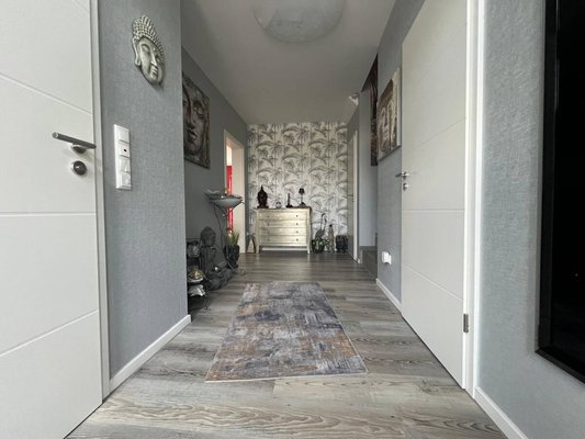 Schon beim Betreten spürt man die besondere Atmosphäre: Helle, lichtdurchflutete Räume, edle Bodenbeläge und eine durchdachte Raumaufteilung schaffen ein Wohnambiente auf höchstem Niveau. Die moderne Einbauküche ist nicht nur ein Blickfang, sondern auch perfekt auf Funktionalität ausgelegt. Hochwertige Elektrogeräte, viel Stauraum und stilvolle Materialien machen Kochen zum Genuss.