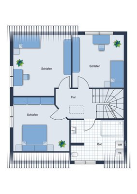 Im Obergeschoss erwarten Sie drei helle Schlafräume und ein großzügiges Badezimmer. Der Spitzboden ist als zusätzlicher Nutzraum ausgebaut und über eine Einschubtreppe erreichbar.