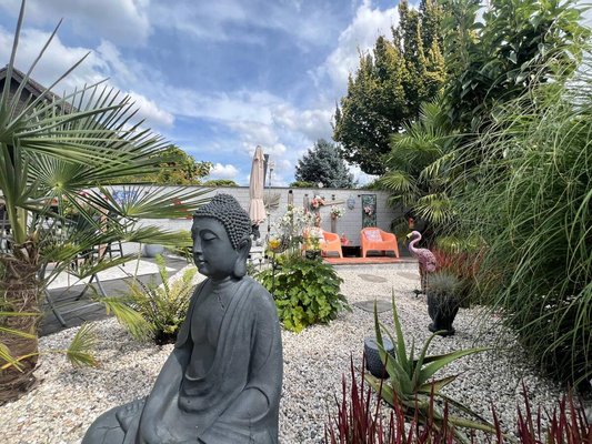 Der Garten dieser Immobilie ist mehr als nur Außenbereich - er ist ein Ort zum Ankommen und Durchatmen. Mit viel Liebe zum Detail gestaltet, erwartet Sie eine grüne Oase mit exotischen Pflanzen und stilvollen Akzenten.
