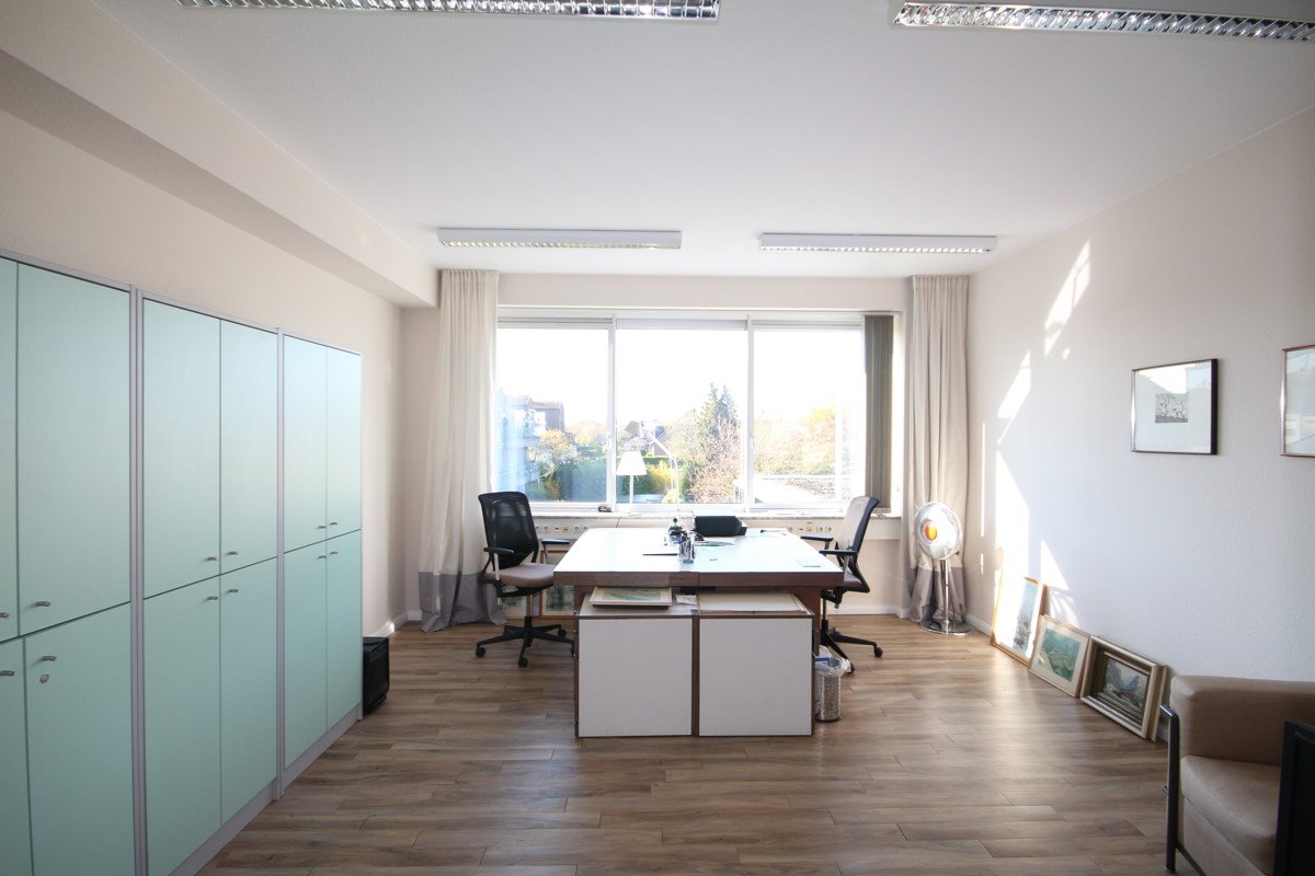 Die großzügigen und lichtdurchfluteten Büroräume erstreckt sich über das 2. Obergeschoss des repräsentativen KHW-Hauses, welches Bestandteil eines Büroparks in Meerbusch-Büderich ist. Der Büropark liegt sehr zentral und äußerst verkehrsgünstig. Die