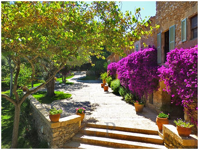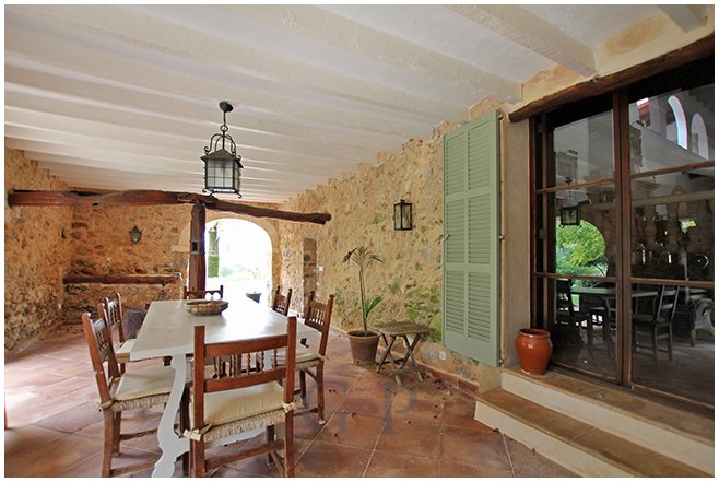 Nachdem Sie die Zufahrt passiert haben erblicken Sie dieses alte Herrenhaus, das imposant auf einer kleinen Erhöhung positioniert ist. Die Natursteinfassade, eingewachsen von Bouganvillas, versprüht vom ersten Moment an Charme und Geborgenheit. Die vorgelagerte Terrasse mit Blick auf Sant Salvador bietet Ihnen einen idyllischen Platz zum verweilen an.