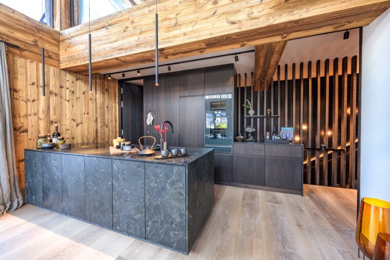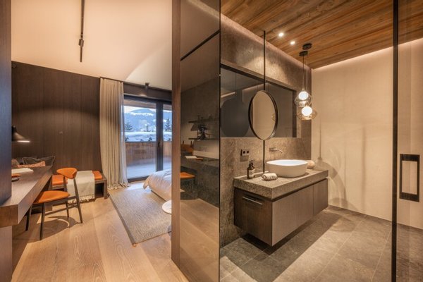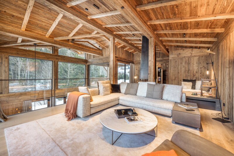 Aufwändige Tiroler Architektur, traditionelle natürliche Materialien und Privatsphäre prägen die 5 Lodges in dieser fantastischen Sonnenlage. Mit dem Anspruch an Perfektion bis ins kleinste Detail und im Einklang mit der Natur hat man geniale Raumkonzepte erschaffen. Möbliert wurde mit italienischen Designermöbeln von Minotti, Flexform und Poltrona Frau, einer maßgefertigten Küche von ST-ONE Design samt Geräten von Gaggenau & Bora. Es wurde bei der Auswahl der Materialen großer Wert auf höchste Qualität und Nachhaltigkeit gelegt. Verschiedene Arten von Loden, Leder und Leinen prägen die Innenraumgestaltung, die Skyframe Minimal Fenster sorgen für maximalen Blick, für die Aussenanlagen wurden lokale Rohstoffe wie Holz und Naturstein verarbeitet.