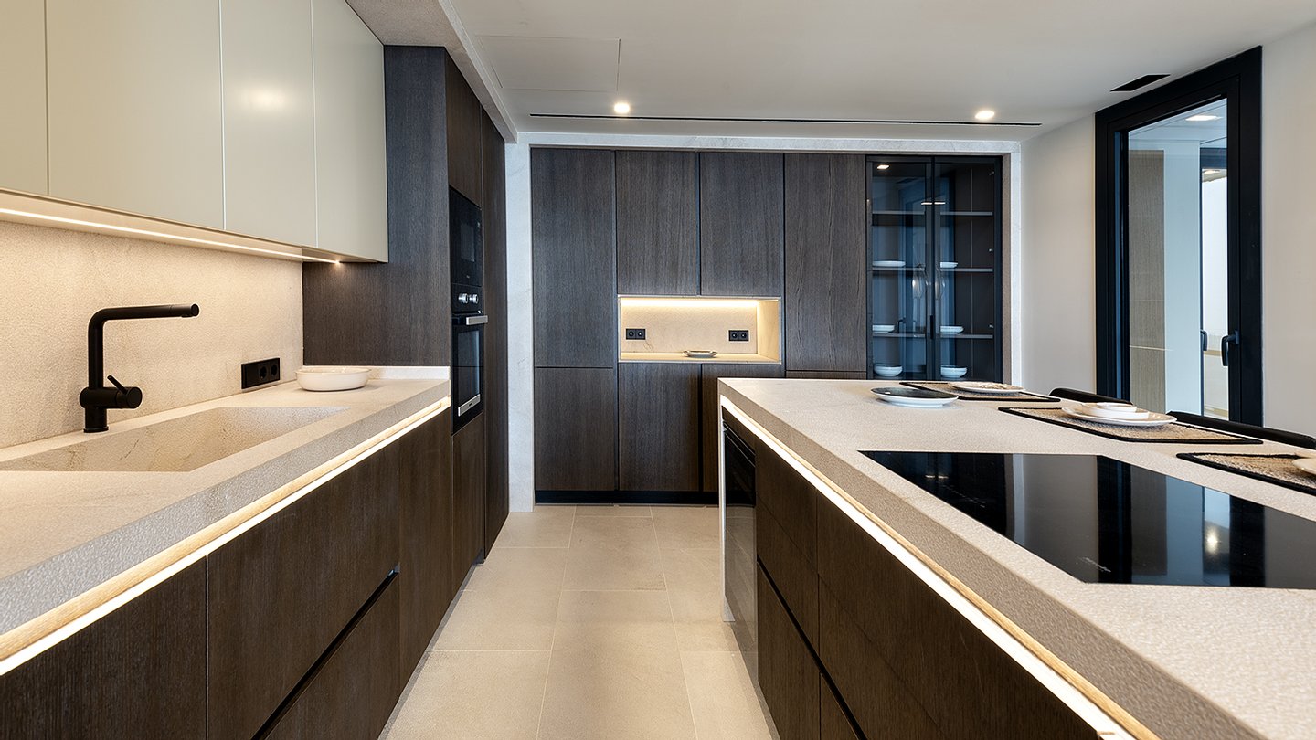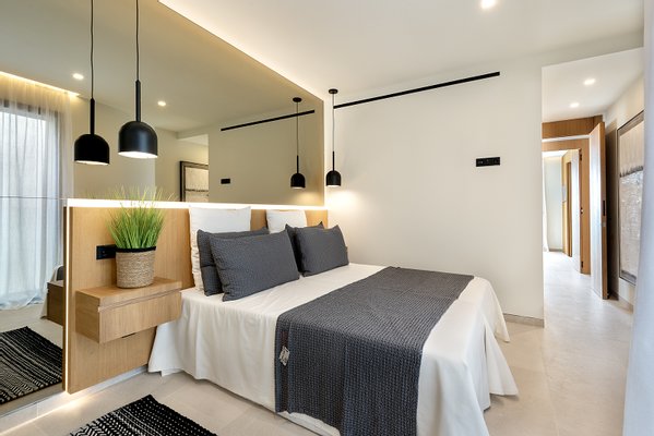 Das attraktive Apartment wird über eine Wohnfläche von ca. 155 m2 verfügen und bietet: ein modernes Wohn/ Esszimmer mit hellen Elementen, eine offene Einbauküche mit hochwertigen Elektrogeräten, zwei große Schlafzimmer mit Badezimmern en Suite, zwei weitere helle Schlafzimmer, ein separates Badezimmer, sowie einen Hauswirtschaftsraum. Das Apartment wird über einen ca. 90 m2 großen Garten verfügen, welcher für entspannte Abende und schöne Stunden sorgen wird. Weitere wichtige Ausstattungsmerkmale sind: Fußbodenheizung, Klimaanlage warm/ kalt, doppelverglaste Aluminiumfenster, Rollläden, Aufzug, Gegensprechanlage, Einbauschränke und Fliesenboden. Die gesamte Wohnanlage wird mit hochwertigen Materialen gebaut und ausgestattet und verfügt über einen eleganten Gemeinschaftspool mit Sonnenterrasse, von wo man einen spektakulären Blick in die Grünzone und die Umgebung hat. Ein Garagenparkplatz ist im Preis inbegriffen und rundet das Angebot ab.