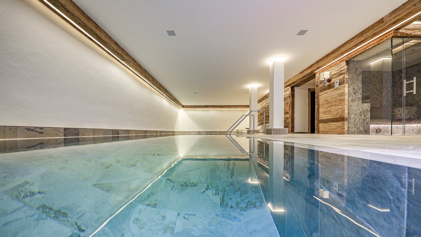 - Wellness/Fitness-Bereich mit Sauna, Dampfbad, Massageraum und großem Indoorpool