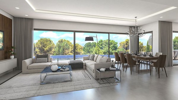 Die Villa verfügt über ein privates und eingezäuntes Grundstück, einen Garten, einen privaten Infinity-Pool, einen Kfz-Stellplatz für zwei Fahrzeuge, Fußbodenheizung, Klimaanlage, Einbauschränke, eine moderne Einbauküche mit Induktionsfeld, Backofen und Dunstabzugshaube, eine Video-Gegensprechanlage und und vieles mehr.
