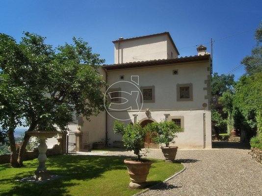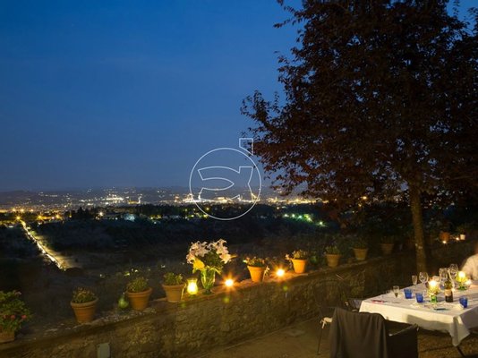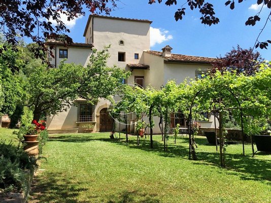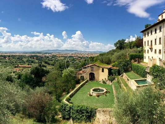 Florentiner Villa aus dem 15. Jahrhundert, kürzlich restauriert mit hochwertigen Oberflächen, Terrassengärten, einem großen Nebengebäude und einem spektakulären Blick auf die Stadt Florenz.