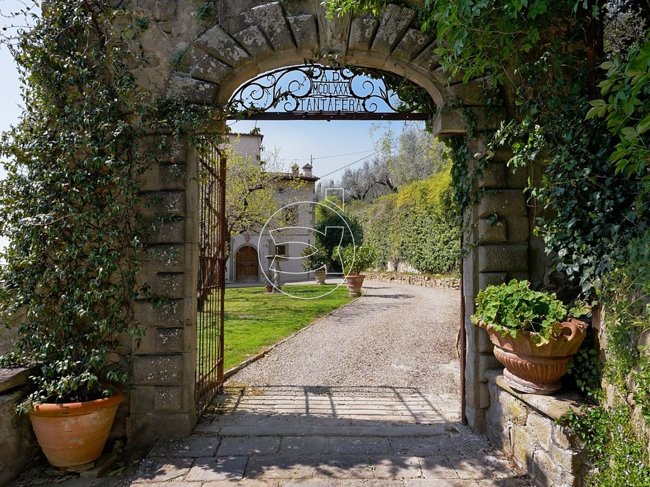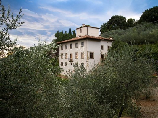 Es ist eine imposante fünfstöckige Immobilie mit herrlichem Blick auf Florenz. Elegant restauriert nach den strengen Vorschriften historischer Gebäude, aber mit allem modernen Komfort, umgeben von zwei Hektar Land mit Olivenbäumen.