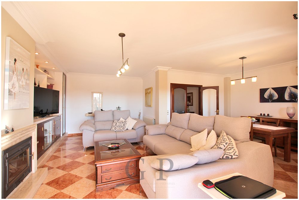 Diese ist aufgeteilt in einen großen Wohn- und Essbereich mit Zugang auf die überdachte Terrasse, eine große Wohnküche ebenfalls mit Zugang auf die überdachte Terrasse sowie drei gut geschnittene Schlafzimmer und zwei Badezimmer an, eines davon en-suite.
