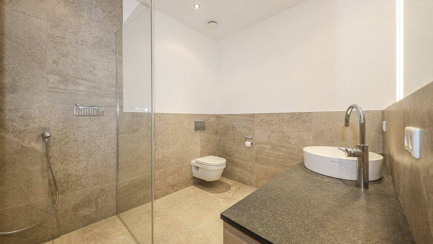 Beheizt wird die Wohnung über eine Fußbodenheizung, welche sich in allen Räumen einzeln regeln lässt.