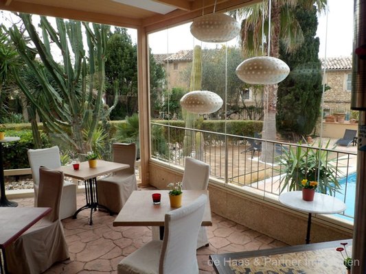 Die Terrassen sind teilweise überdacht und von einem tropischen, mediterranen Garten umgeben.