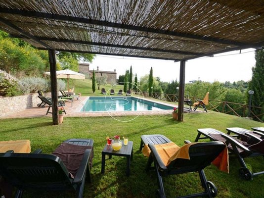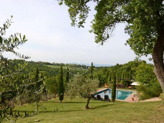 Diese fantastischen Gebäude sind von einem grünen Park mit einer Gesamtfläche von etwa 20.000 m² umgeben. Eingebettet in eine seit Jahrhunderten intakte Landschaft, in der Tradition und Kultur in einem Szenario von natürlicher und raffinierter Schönheit verschmelzen, ist dieses alte Bauernhaus, das sich in einem strategischen Gebiet zwischen Umbrien und der Toskana befindet, der ideale Ort, um die Landschaft in vollen Zügen zu genießen, nur wenige Minuten von allen Dienstleistungen und Punkten von großem kulturellen Interesse entfernt.