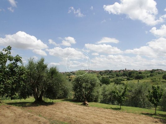 Das Land von 16000 m² ist aufgeteilt in Garten (156 m²) Olivenhain mit etwa 70 Pflanzen (2.150 m²). Das restliche Land ist Ackerland.