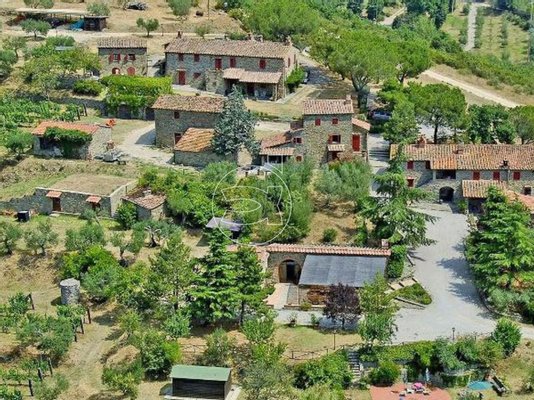 Im Herzen der Toskana, in einer hügeligen und panoramischen Lage, in der Nähe von Cortona, steht dieses kleine Anwesen mit einer Lizenz für Agrotourismus mit 900 Quadratmetern Fläche, bestehend aus sieben Gebäuden, die sechs Wohnungen beherbergen, ein Restaurant, ein Lagerraum und ein Gebäude mit circa 100 Quadratmetern, das restauriert werden soll, umgeben von 10 Hektar Land mit Weinbergen.