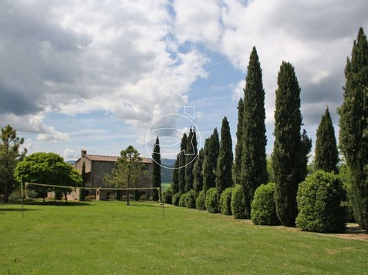Eingebettet in die grüne toskanische Landschaft genießt das 170 Hektar große Anwesen eine Panoramalage, in der sich das Auge an der Schönheit der Sonnenuntergänge verliert.
