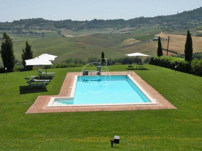 Das Anwesen genießt dank seiner privilegierten Lage auf einem Hügel mit einem 360°-Blick eine außergewöhnliche Landschaft, die es einrahmt: auf der einen Seite Montepulciano, auf der anderen Montefollonico und Pienza und dahinter eindrucksvoll das Val di Chiana mit dem Blick auf Cortona und am Horizont der Apennin.