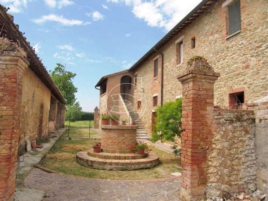 Eingebettet in die faszinierende Landschaft der Crete Senesi, mit wunderschönem Panoramablick, umgeben von 44 Hektar Land liegt diese antike Immobilie, südlich von Siena und ganz in der Nähe der Thermen von Rapolano Terme.