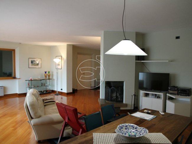 Im Erdgeschoss der ersten Wohnung befindet sich ein großes und helles Wohnzimmer mit Kamin, Küche, Speisekammer, Badezimmer und eine große Panoramaterrasse für Mittag- und Abendessen im Freien;