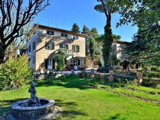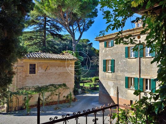 Alte Residenz zwischen Valdichiana und Valdorcia, ein Gebäude, dass im 19. Jahrhundert seine Blütezeit hatte, feinfreskierte und magisch erhaltene Räume, Blick auf Montepulciano im Zauber eines Panoramas, dass sich vom Trasimenischen See bis zum Horizont des Apennins erstreckt.