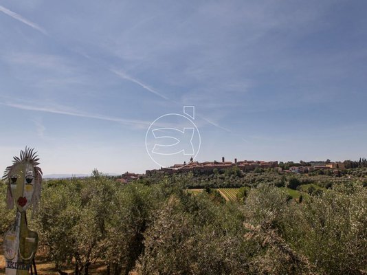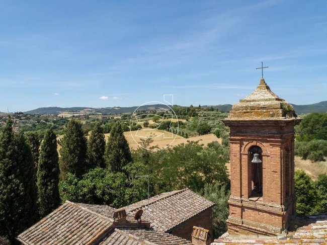 Es ist ein altes Steindorf, das in Anlehnung an eine Kirche aus dem 13. Jahrhundert erbaut wurde und majestätisch auf einem prächtigen Hügel steht, der vollständig von Zypressen und jahrhundertealten Olivenbäumen umgeben ist, die ein wundervolles Panorama auf die umliegende Landschaft und das historische Zentrum von Torrita di Siena einrahmen.