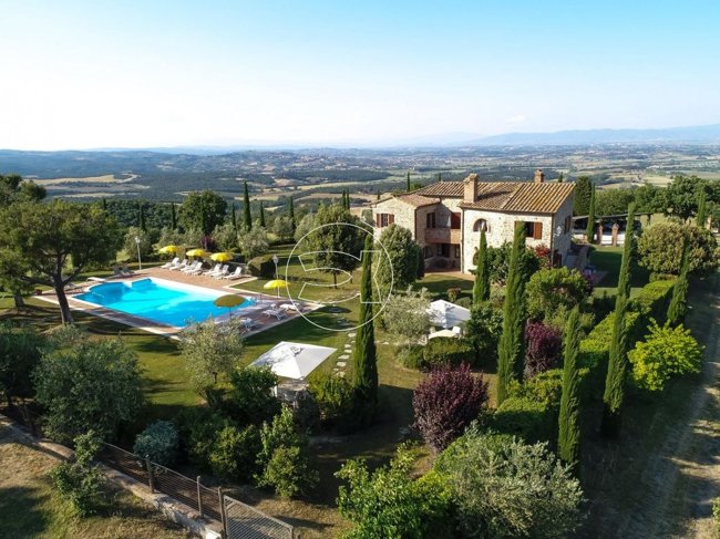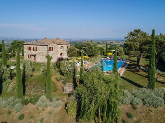 Charmantes Anwesen im Grün eines bezaubernden Senese Hügel eingetaucht, in einer dominanten Position mit Blick auf die malerischsten Panorama Punkte des Val di Chiana mit einer wunderbaren Aussicht.