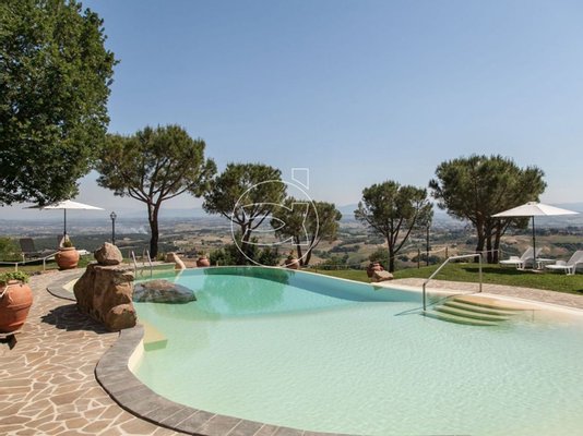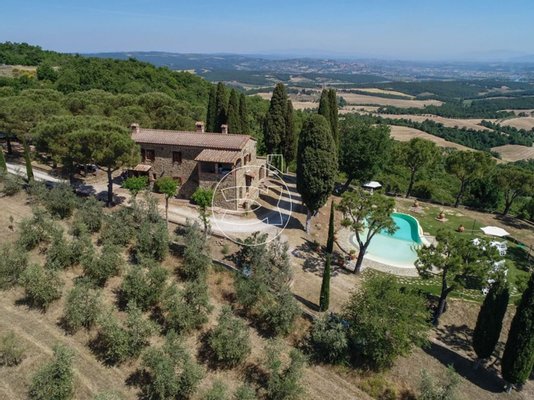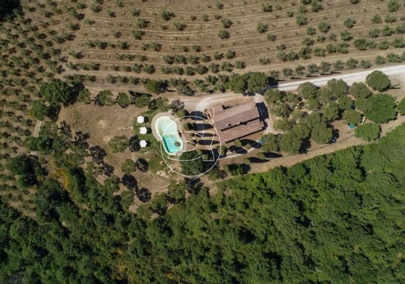 Das Anwesen umfasst circa 50 Hektar, aufgeteilt zwischen Feldern, Olivenhainen und Wäldern, sowie zwei unabhängige Cottages mit zwei Swimmingpools, die circa 300 Meter voneinander entfernt und durch eine Straße verbunden sind, die entlang des Olivenhains verläuft und auch zu Fuß begangen werden kann.