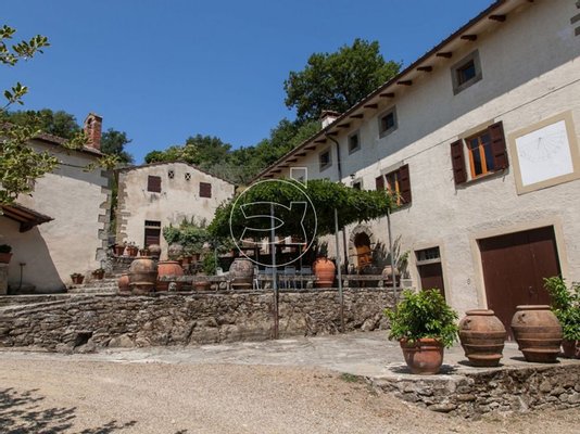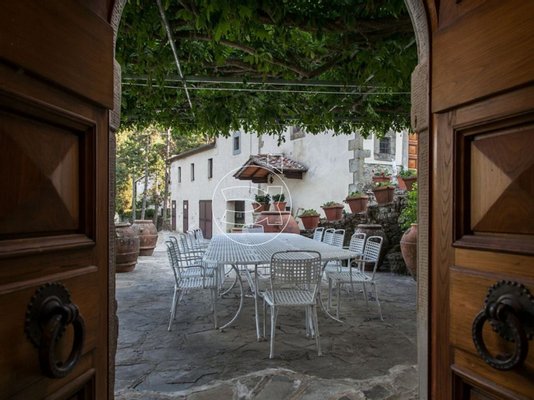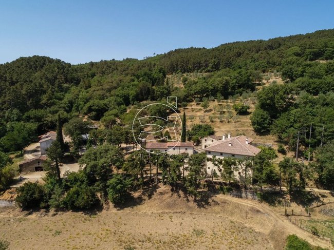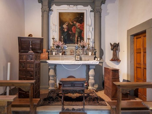 Dieses Anwesen in der Provinz Arezzo hat eine Gesamtfläche von circa 2.150 Quadratmetern und umfasst sechs Einheiten, wie zum Beispiel ein Hauptgebäude, das Haus des Hausmeisters, eine kleine Kirche und zwei Gebäuden aus Stein, die renoviert werden müssen.