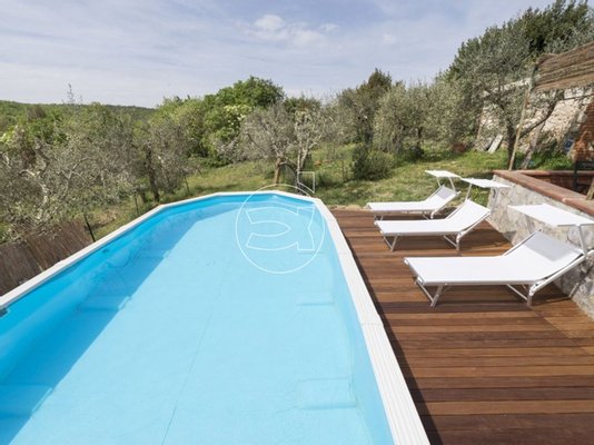Land: Das Anwesen umfasst 2300 Quadratmeter Land mit etwa 45 Olivenbäumen. Auf dem Grundstück befindet sich ein Außenschwimmbad.
