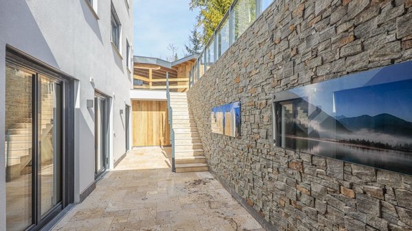 Die Terrasse bietet auch im Außenbereich der Wohnung ausreichen Platz, von dort gelangt man auch in den Lichthof des Untergeschosses.