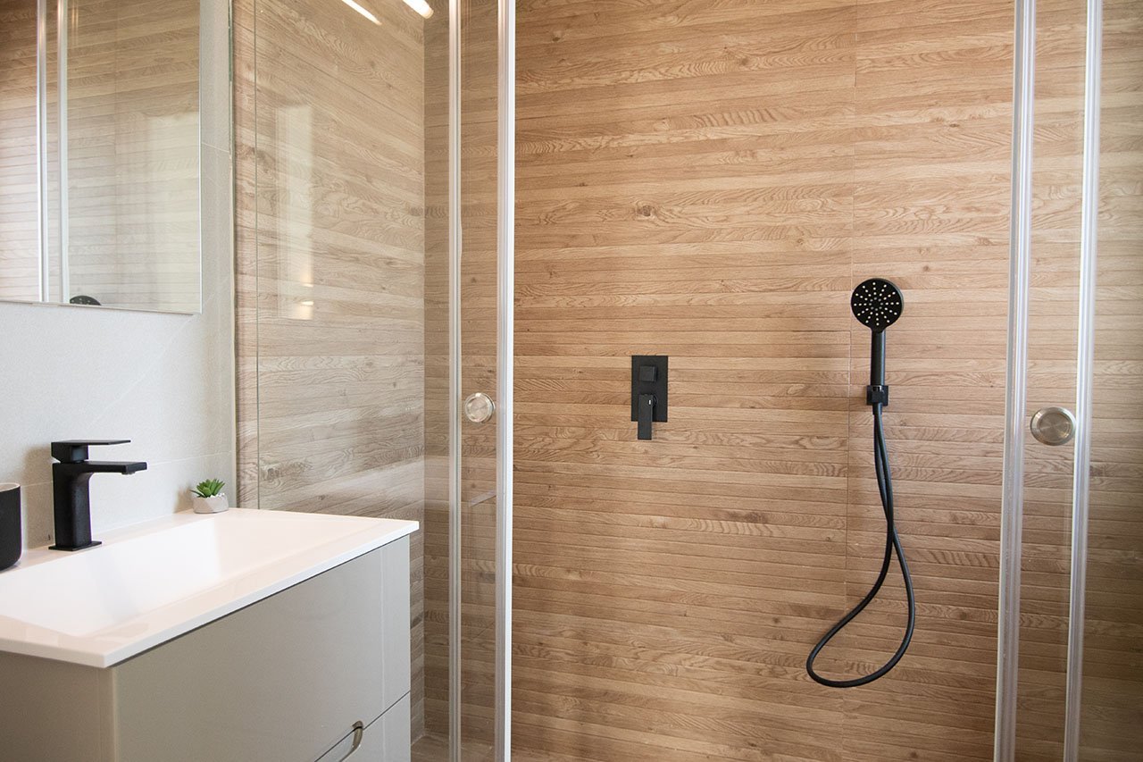 Die Villen verfügen über 3 Schlafzimmer und 2 Bäder oder 2 Bäder und Gäste-WC.
