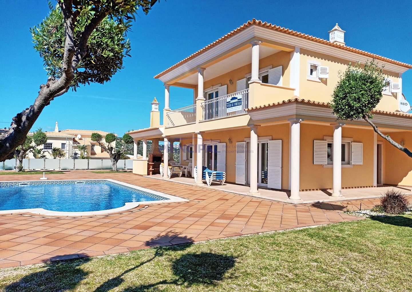 Das Anwesen ist komplett ummauert und eingezäunt und verfügt über schöne Gartenbereiche rund um die Villa, einen großen beheizten Pool und eine Außendusche.