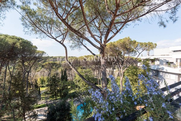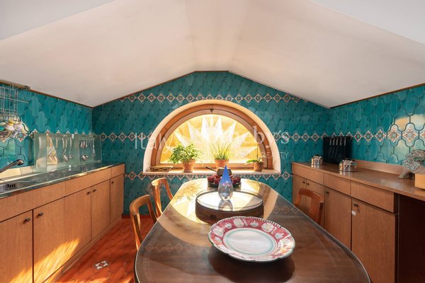 Das luxuriöse Anwesen erstreckt sich über eine Innenfläche von etwa 1200 qm, verteilt auf 5 Ebenen und mit einem internen Aufzug erreichbar. Der große Eingang führt zu prächtigen Empfangsräumen sowie zum Speisesaal und Arbeitszimmer. Die oberen Stockwerke sind dem Schlafbereich und weiteren Wohnbereichen gewidmet. Auf der obersten Ebene des repräsentativen Anwesens befindet sich zudem ein wunderschönes Penthouse mit Terrasse, von dem aus man einen spektakulären Blick ins Grüne des gesamten Quartiers genießen kann, sowie von den zahlreichen Balkonen und Terrassen und Loggien, die das Anwesen prägen. Schließlich befinden sich im Untergeschoss mehrere Wirtschaftsräume, eine prächtige Profiküche mit Speisesaal und ein kleiner Wellnessbereich mit Sauna.