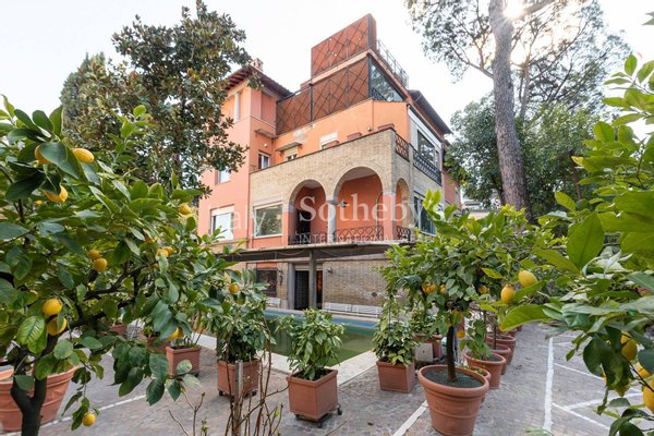 Auf der Via Barnaba Oriani, einer der prestigeträchtigsten Straßen des Wohnviertels Parioli, erstreckt sich diese exklusive Luxusvilla über 4 oberirdische Ebenen zusätzlich zum Untergeschoss und ist von einem herrlichen, hauptsächlich gepflasterten