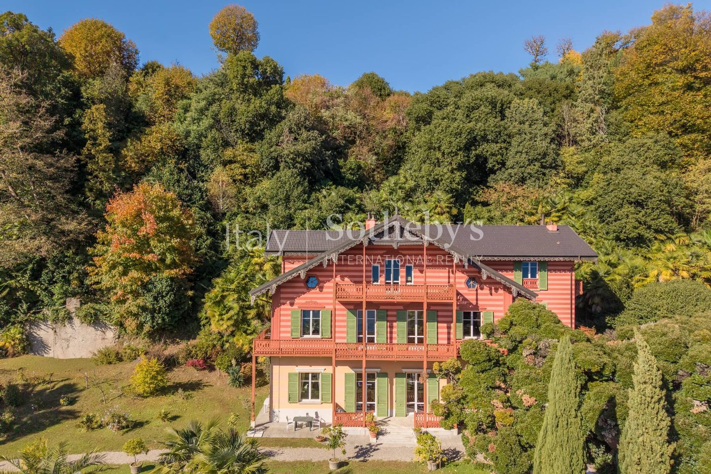 Prächtige historische Villa, erbaut 1866, Heimat der berühmten Familie Troubetzkoy, berühmter Persönlichkeiten wie der Schauspielerin Eleonora Duse, des Malers Daniele Ranzoni, des US-Präsidenten Ulysses S. Grant, eingebettet in einen herrlichen botanischen Park, der von imposanten Palmen geprägt ist sowie ein prächtiger Wintergarten, ehemals Orangerie und Zitronenhaus, heute ein Ort der Entspannung mit imposantem Kamin und Holzofen. Die Villa erstreckt sich über 900 Quadratmeter, im Erdgeschoss befinden sich ein helles und elegantes Wohnzimmer, ein Musikzimmer, eine Küche und ein Esszimmer. Im ersten Stock befinden sich neben dem Hauptschlafzimmer zwei Apartments mit eigenem Bad und Küchenzeile, elegant und mit wertvollen Details verziert, mit einer 90 qm großen Terrasse, die einen einzigartigen Seeblick bietet. Auf der zweiten Etage vier Apartments, alle mit eigenem Bad und Küchenzeile, teilweise mit Balkon, die sich durch einen atemberaubenden Seeblick auszeichnen. Es gibt auch eine Mini-Wohnung im Dachgeschoss. Im Untergeschoss gibt es die Technikräume.