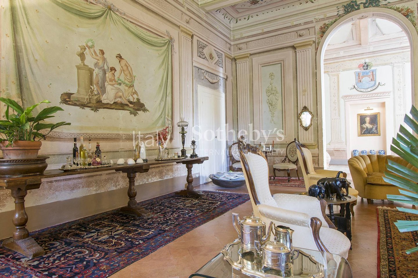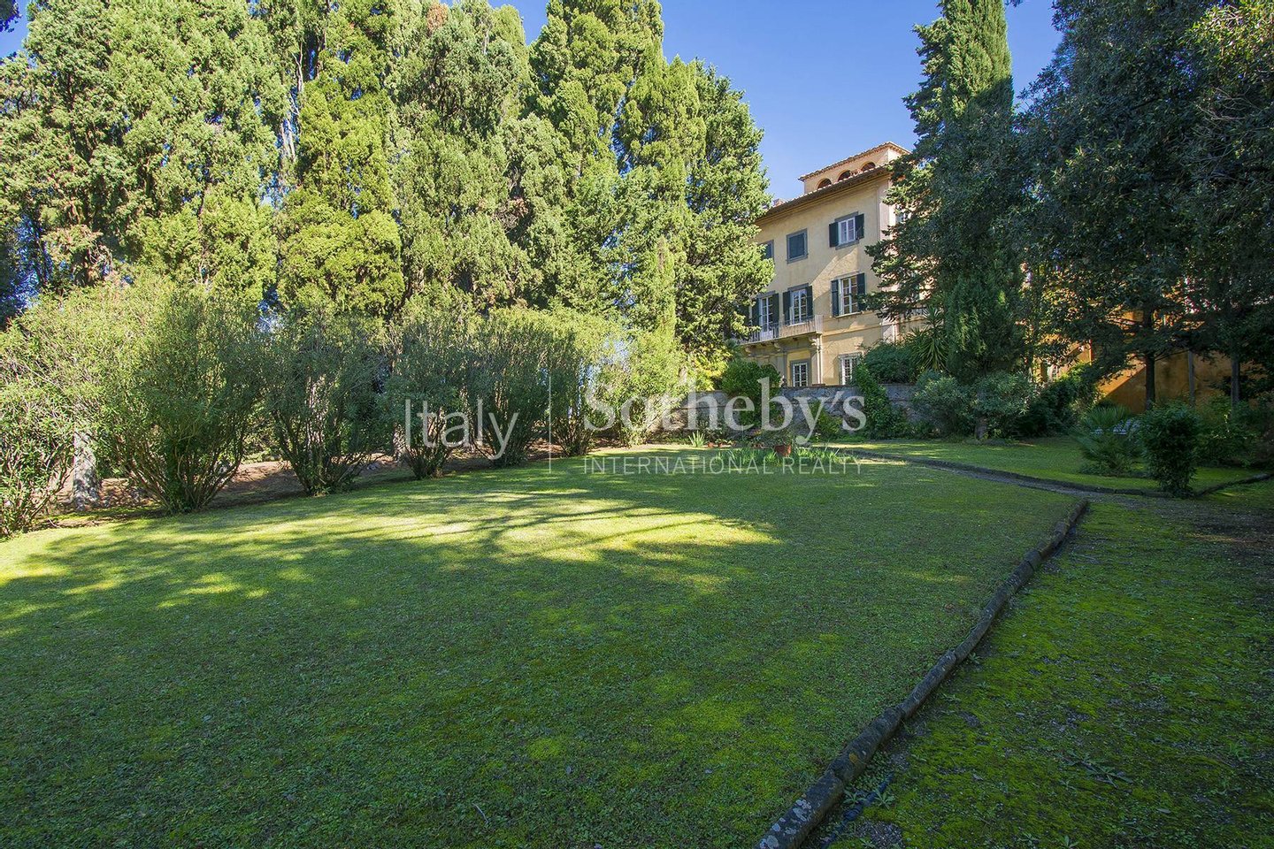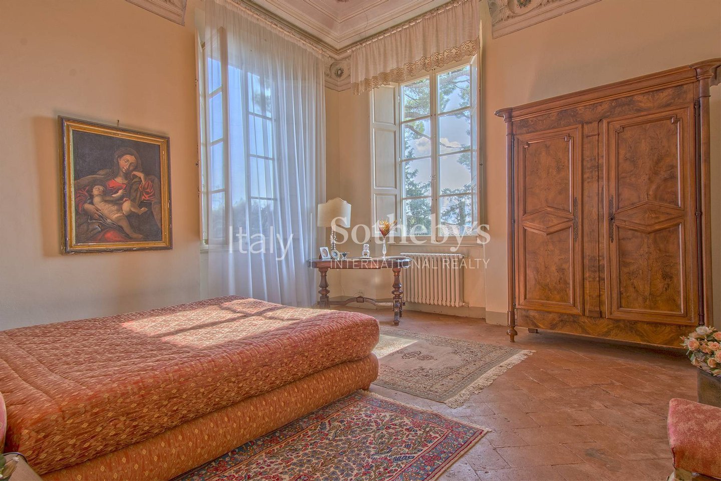 Das Anwesen, das vor allem für seinen künstlerischen und historischen Wert wichtig ist, befindet sich in einem Park von etwa 10.000 qm, in dem viele Ecken geschaffen wurden, um die schönen Außenbereiche zu genießen. Es hat eine atemberaubende Aussicht, die von der berühmten Piazza dei Miracoli bis zum Meer reicht, von der umliegenden Landschaft bis zu den kleinen alten Dörfern, die die Hügel säumen. Die kostbaren Fresken charakterisieren diese wundervolle Villa und machen sie in ihrer Art einzigartig.