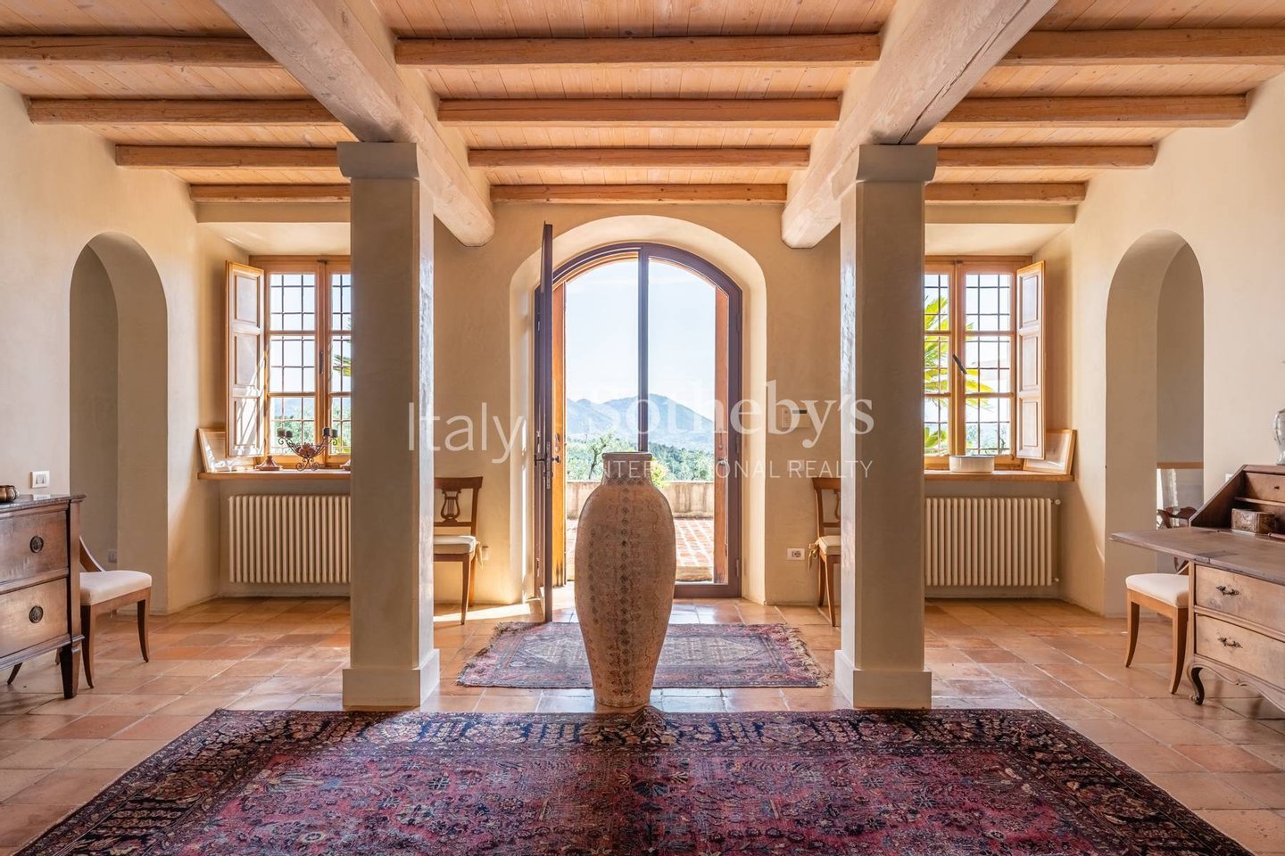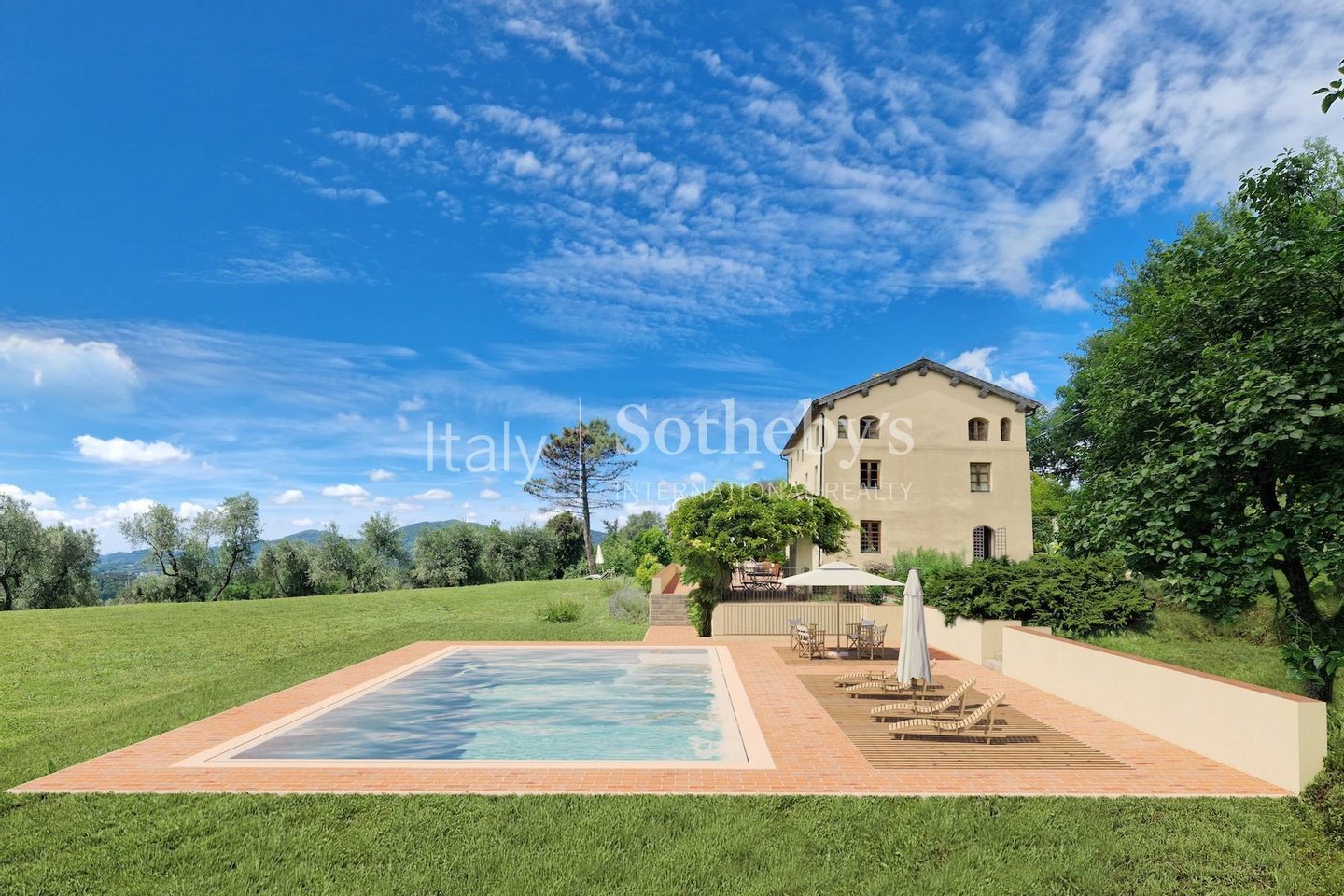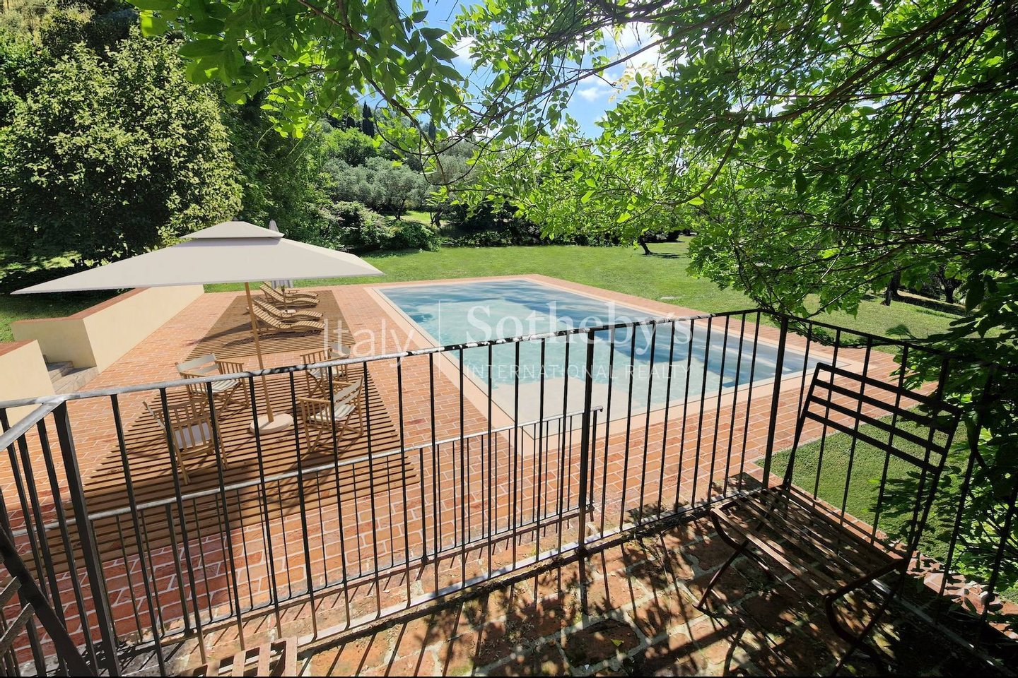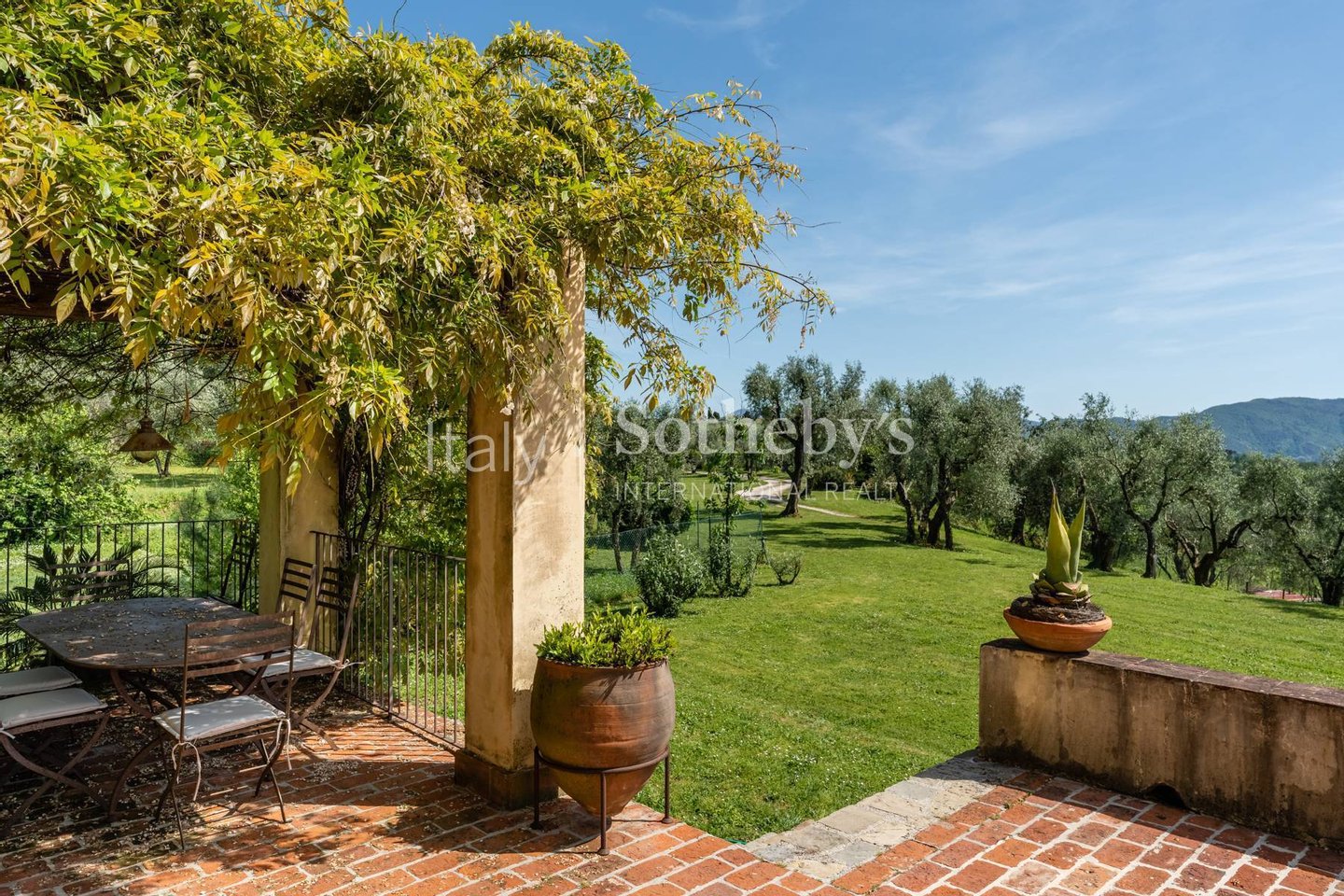 Diese wunderschöne und perfekt restaurierte Villa befindet sich auf den Hügeln von Lucca, wenige Schritte von der Altstadt vieler wichtigen Städten und Stränden der Versilia. Die Sorgfalt für Details und den feinen Geschmack des Architekten sind von