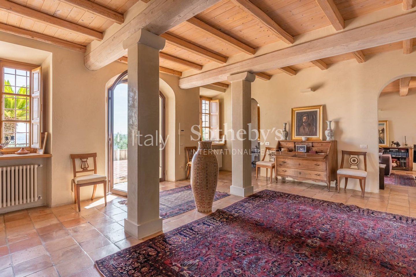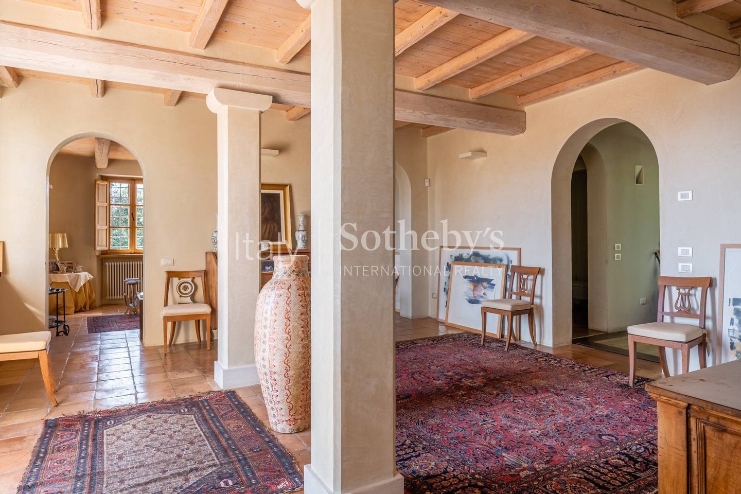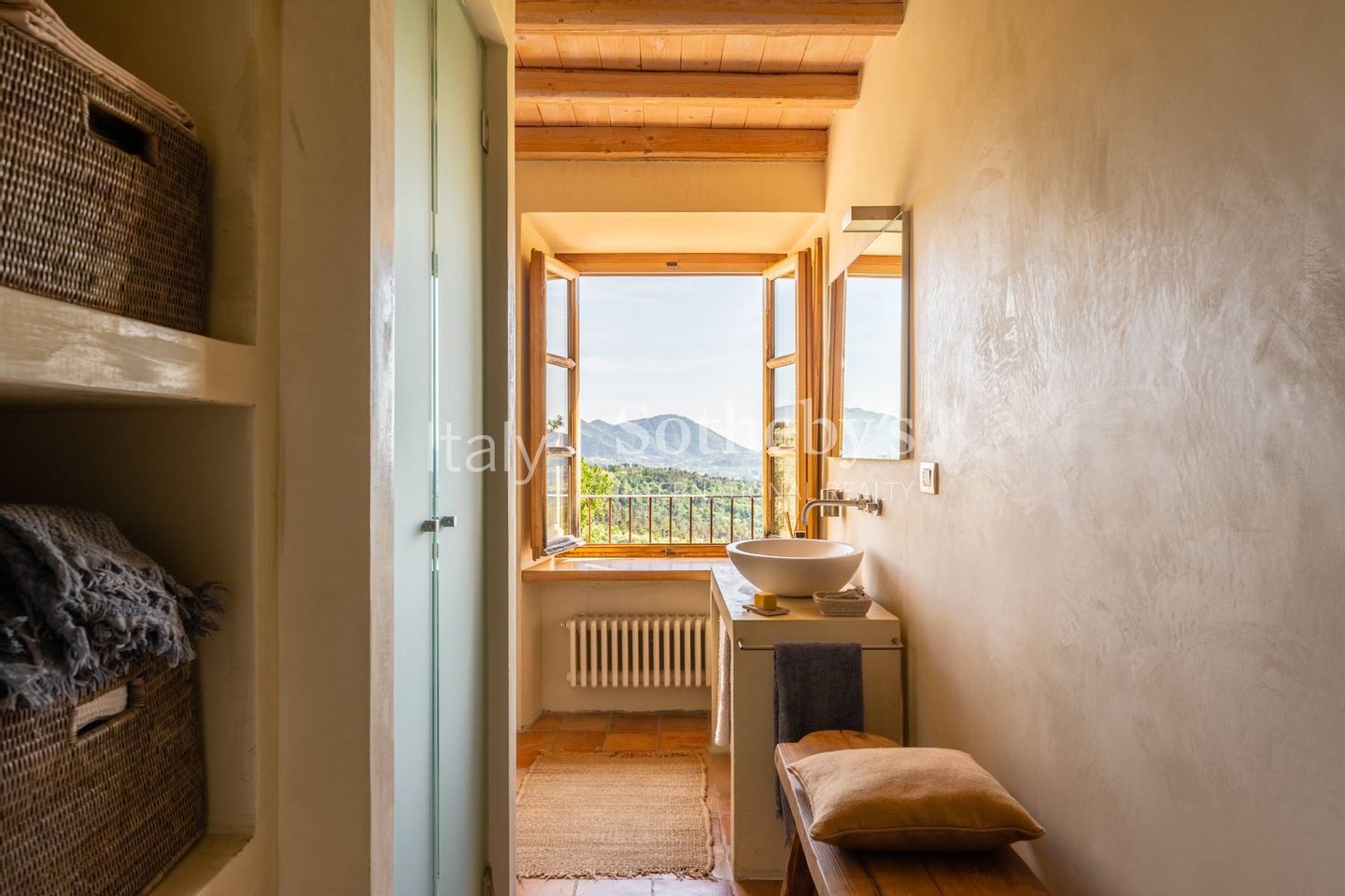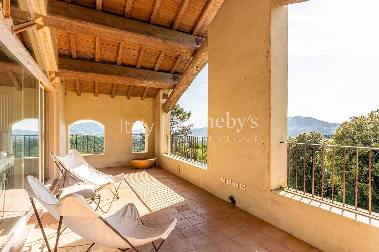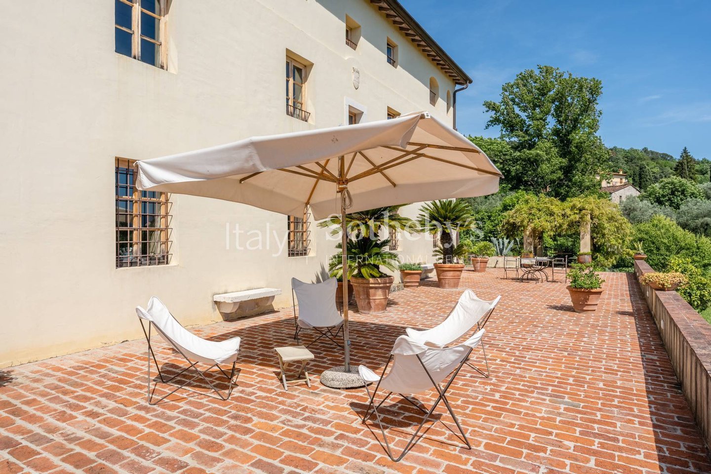 Diese wunderschöne und perfekt restaurierte Villa befindet sich auf den Hügeln von Lucca, wenige Schritte von der Altstadt vieler wichtigen Städten und Stränden der Versilia. Die Sorgfalt für Details und den feinen Geschmack des Architekten sind von