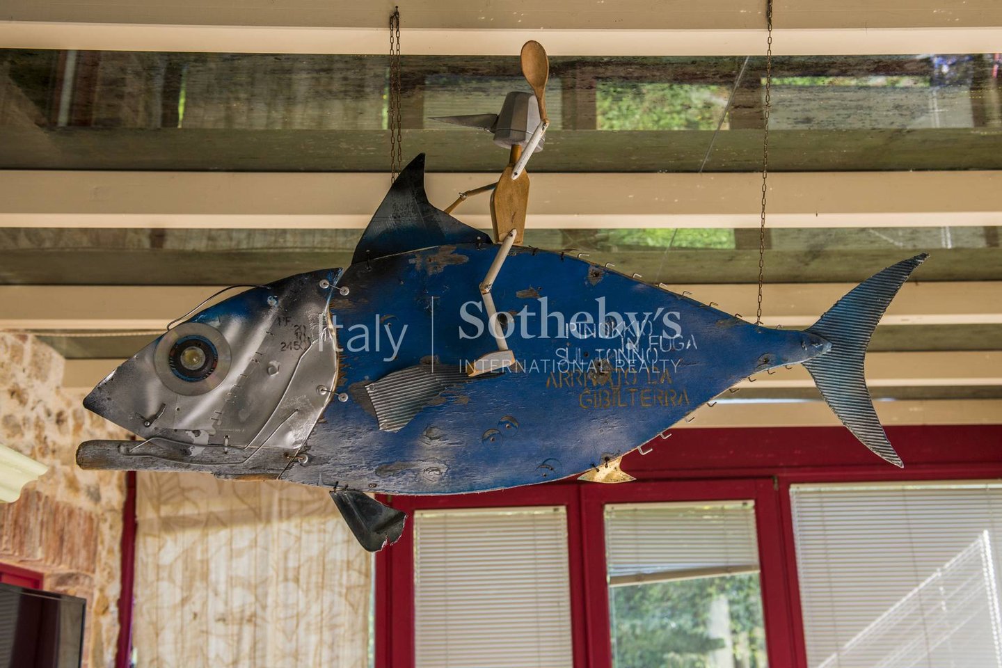 Im Untergeschoss befinden sich eine große Taverne, die als Atelier des Künstlers dient, zwei weitere Kellerräume, der Technikraum und zwei Badezimmer.