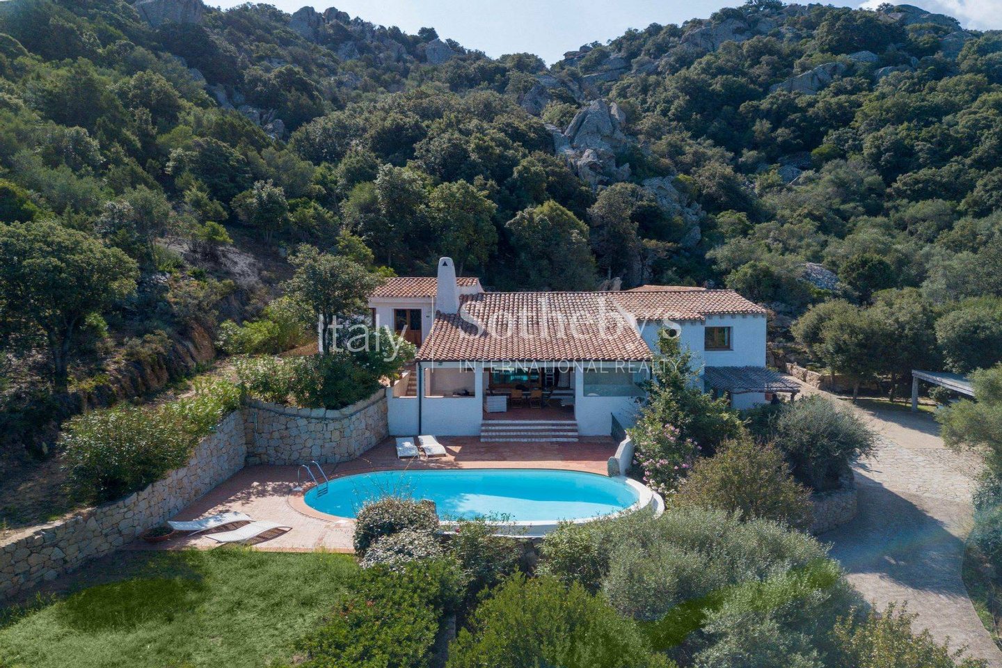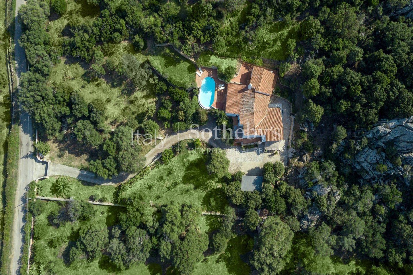 Dieses große Anwesen mit einer Fläche von etwa zwei Hektar inmitten der mediterranen Macchia befindet sich nur wenige Kilometer von der Costa Smeralda und dem charmanten Dorf San Pantaleo entfernt.