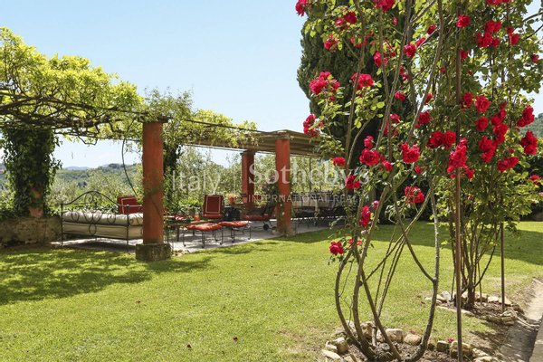 In einer Ecke des Gartens befinden sich ein Fitnessraum, ein Gartenwerkzeugraum, ein Holzofen und eine restaurierte Kapelle. Das Anwesen umfasst eine Limonaia von ca. 120 qm auf zwei Etagen mit separatem Zugang, mit 2 Schlafzimmern und ein Badezimmer, einem großen Keller, einer Wohnung von ca. 60m² für die Fälle mit offener Küche, 1 Badezimmer und einem Loft-Schlafzimmer, einem Nebengebäude landwirtschaftliche Fläche von ca. 70 qm, 3,5 ha Land mit ca. 750 Olivenbäumen, Obstbäumen, Möglichkeit der Schaffung eines Gemüsegartens und 2500 qm Weinberg und ein Schwimmbad von 10,5 x 3,5 m mit einem kleinem Gebäude mit Bad und Grill.