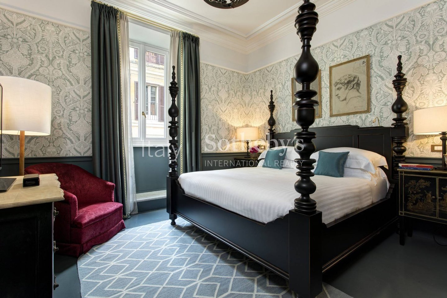 Diese prächtige Wohnung befindet sich in einem eindrucksvollen Gebäude aus dem 18. Jahrhundert, in dem ausschließlich die privaten Wohnungen auf der Piazza di Spagna im Herzen des historischen Zentrums von Rom des Rocco Forte House untergebracht sind.