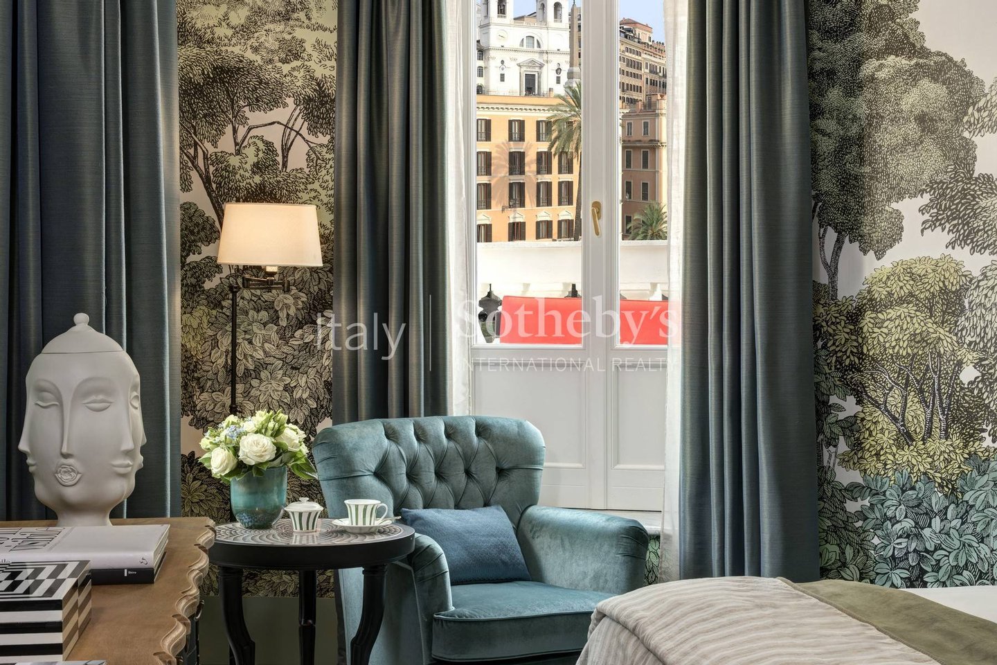 Diese prächtige Wohnung befindet sich in einem eindrucksvollen Gebäude aus dem 18. Jahrhundert, in dem ausschließlich die privaten Wohnungen auf der Piazza di Spagna im Herzen des historischen Zentrums von Rom des Rocco Forte House untergebracht sind.