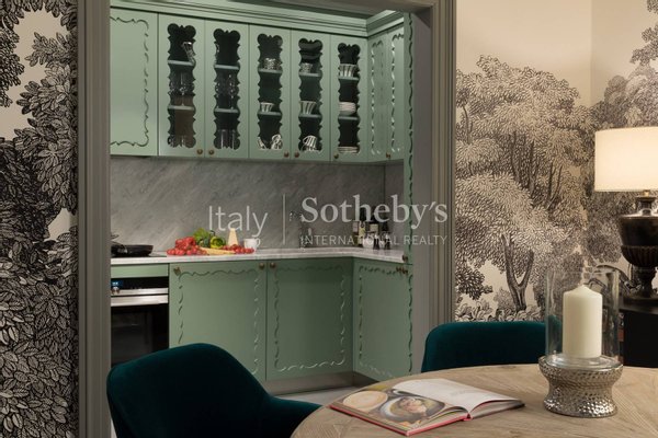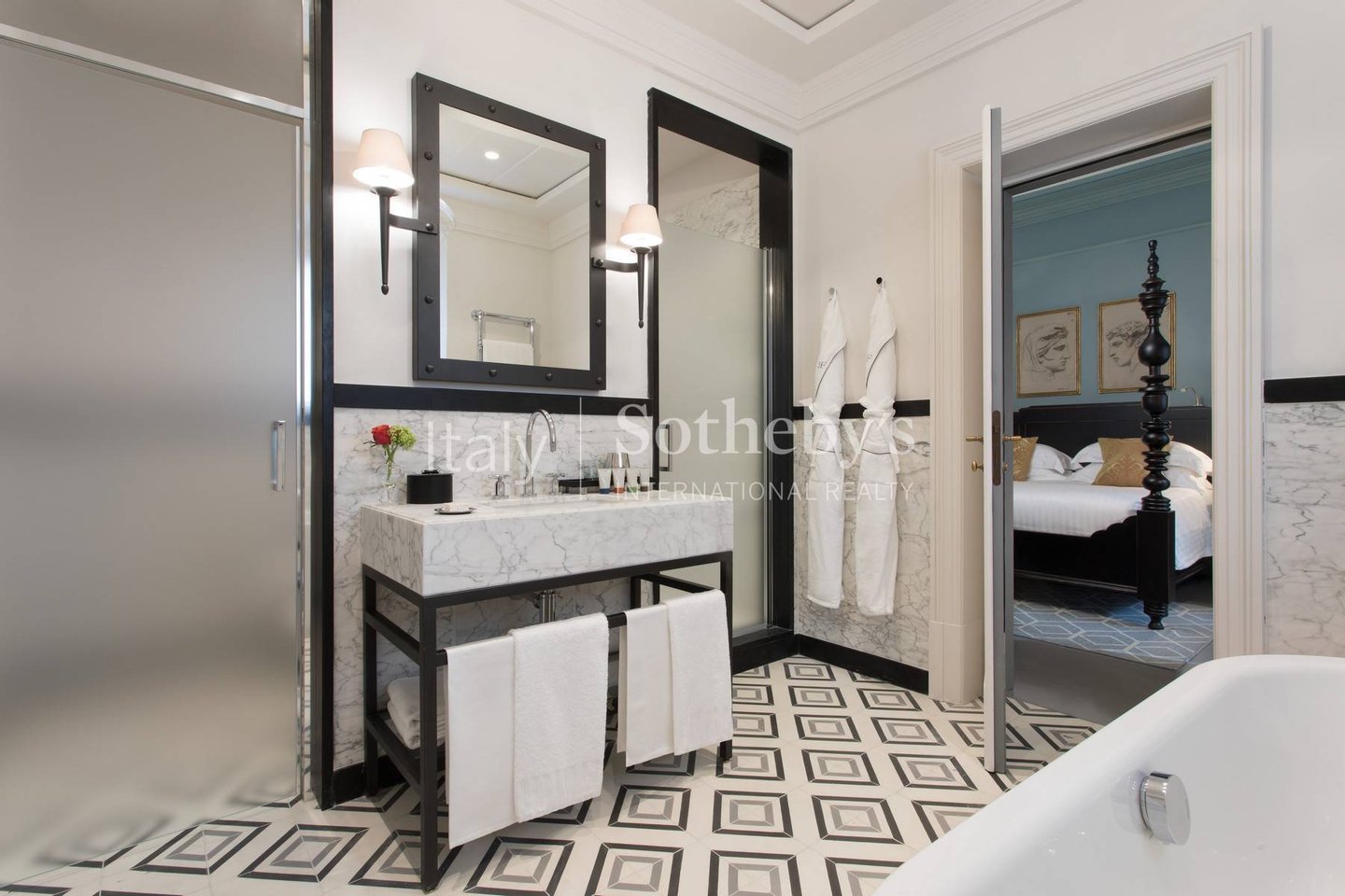 Diese prächtige Wohnung befindet sich in einem eindrucksvollen Gebäude aus dem 18. Jahrhundert, in dem ausschließlich die privaten Wohnungen auf der Piazza di Spagna im Herzen des historischen Zentrums von Rom des Rocco Forte House untergebracht sind.
