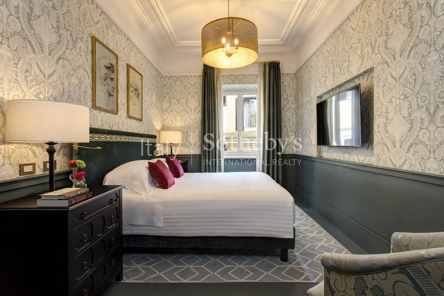 Diese prächtige Wohnung befindet sich in einem eindrucksvollen Gebäude aus dem 18. Jahrhundert, in dem ausschließlich die privaten Wohnungen auf der Piazza di Spagna im Herzen des historischen Zentrums von Rom des Rocco Forte House untergebracht sind.