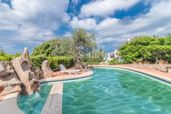 Wunderschöne Villa wenige Schritte vom Eingang von Strand del Grande Pevero. Die Immobilie befindet sich oberhalb der Baja, in exklusiver Lage. Es ist möglich vom Haupttor aus Wacholder die Villa betreten, oder von einem zweiten Eingang. Gemäß dem Stil der Costa Smeralda ist die Villa prächtig aber kaum von der Hauptstraße sichtbar, denn sie ist von einem großen Garten umgeben und perfekt in der Umgebung mit Steinen und Vegetation integriert. Der Wohnbereich ist geräumig und hell, mit Fenstern auf die große Terrasse auf mehreren Ebenen: Im Innenbereich gibt es einen Grillplatz und eine überdachte und ausgestattete Veranda mit Esstisch, Stühlen und Sesseln: im Außenbereich auf den Garten, ist es auch möglich, den 180 Grad Meerblick zu genießen. Auf der linken Seite, von Pflanzen und Hecken umgeben, gibt es den Pool mit Pavillon aus Stein und Holz und einen Granit-Tisch. Die ganze Immobilie verfügt über Privacy und Ruhe. Die Innenräume sind so unterteilt: Wohnbereich im oberen Stock, mit großer Küche, Wohnzimmer und Open-Space-Saal, Eingang und Badezimmer für Gäste. Der Schlafbereich, vom Saal erreichbar, befindet sich im unteren Stock, mit 3 Doppeltschlafzimmern, jedes mit direktem Zugang zum Garten, zwei Badezimmern und einem Flur mit geräumigem Wand-Kleiderschrank und Wäscherei.