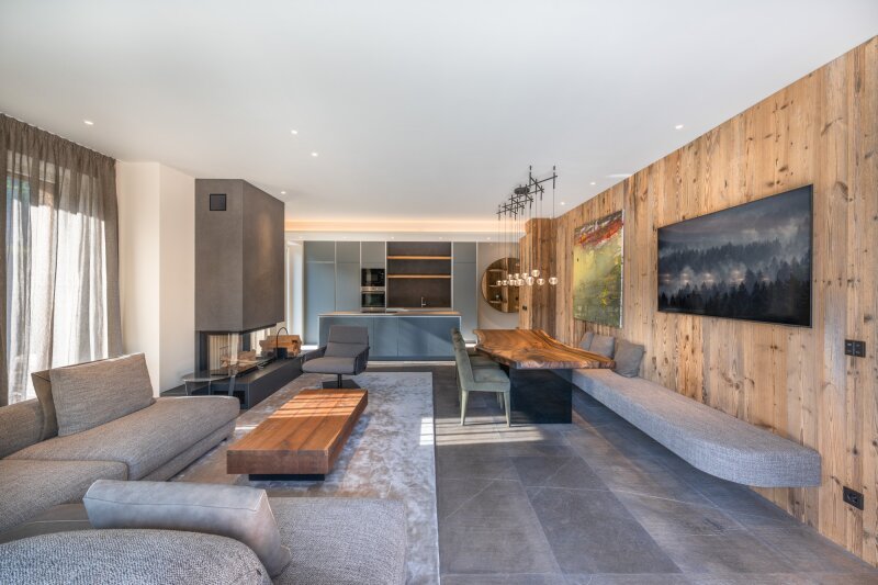 Das kernsanierte und auf höchstem Niveau ausgebaute Landhaus umfasst nur drei exklusive Wohnungen im begehrten Chalet-Stil, die jeweils eine gesamte Etage für sich in Anspruch nehmen, ergänzt durch private Spa- und Freibereiche