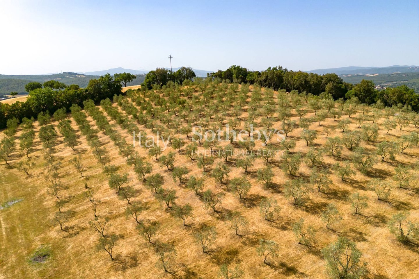 Fast vollständig von Wäldern und Weiden bedeckt, wird es auf der einen Seite von einem wunderschönen Bach durchquert, der sich perfekt zum Angeln und Rafting eignet. Das Land ist vollständig von internen Straßen durchzogen, die die Durchquerung des gesamten Grundstücks erleichtern, wo Sie für die toskanischen Wälder typische Tiere jagen können, darunter Wildschweine, Hasen, Fasane und Enten.