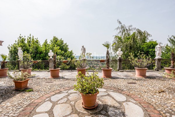 A monumental staircase leads to the first floor, entirely dedicated to the sleeping quarters. The architecture here is equally refined, with many rooms boasting frescoed ceilings and original parquet flooring in excellent condition. The southwest-facing rooms open onto a long balcony that stretches across the façade, filling the interiors with light and stunning views. The smaller second floor provides access to the charming turret via a convenient staircase and includes additional rooms and facilities.
