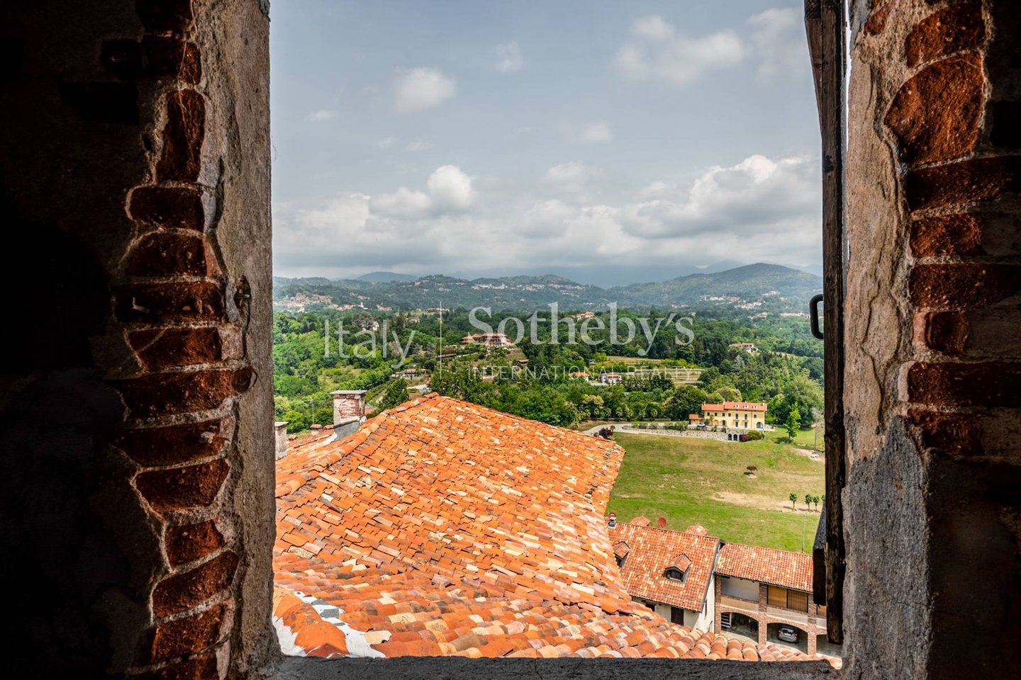 Noble master portion of an ancient castle, set in a dominant position with breathtaking 360-degree views-from the Biella Alps to Monviso, from the Baraggia to the rolling hills and plains of the Novara region. This prestigiou